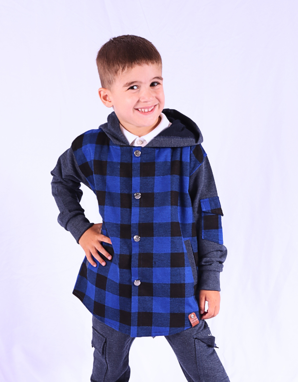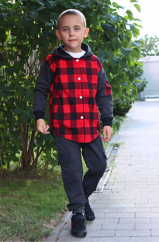 Košeľová mikina-super štýlovka pre chalanov z mäkkého flanelu v kombinácii s teplákovinou-nahradí klasickú mikinu.Veľkosť spravidla vyberajte podľa výšky dieťaťa.Výborne sa k nej hodia aj cargo tepláky s vreckami vo farbe použitej teplákoviny aj na mikine.